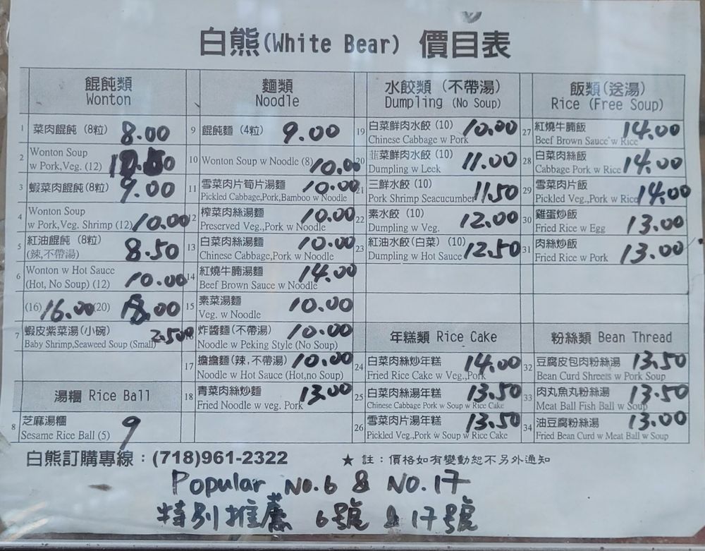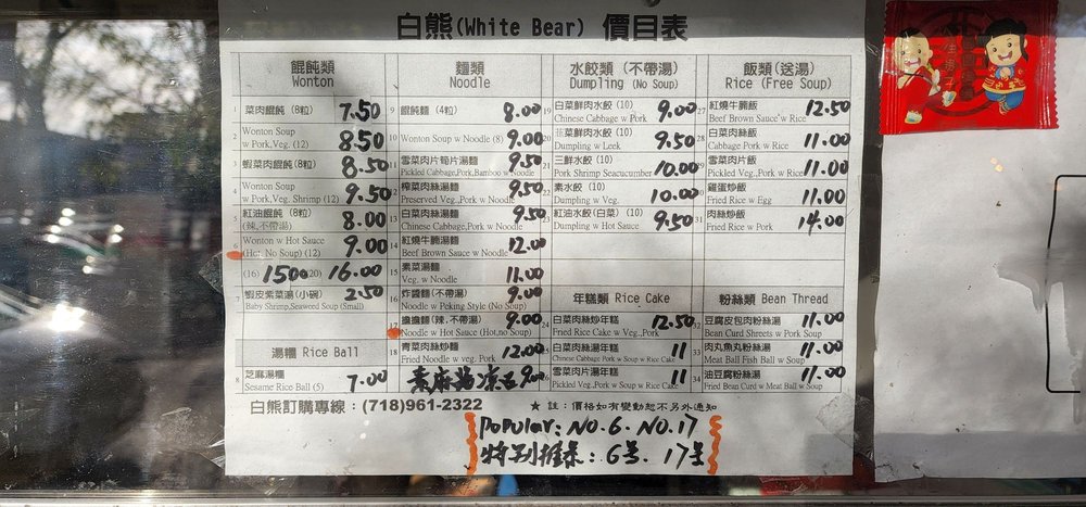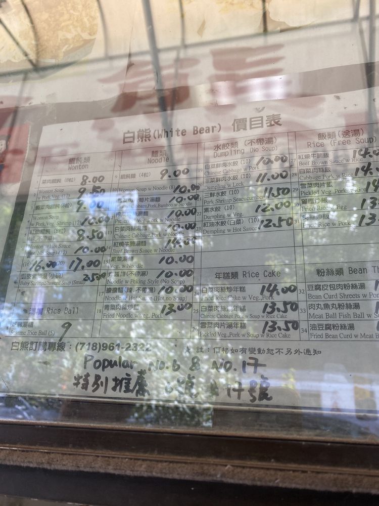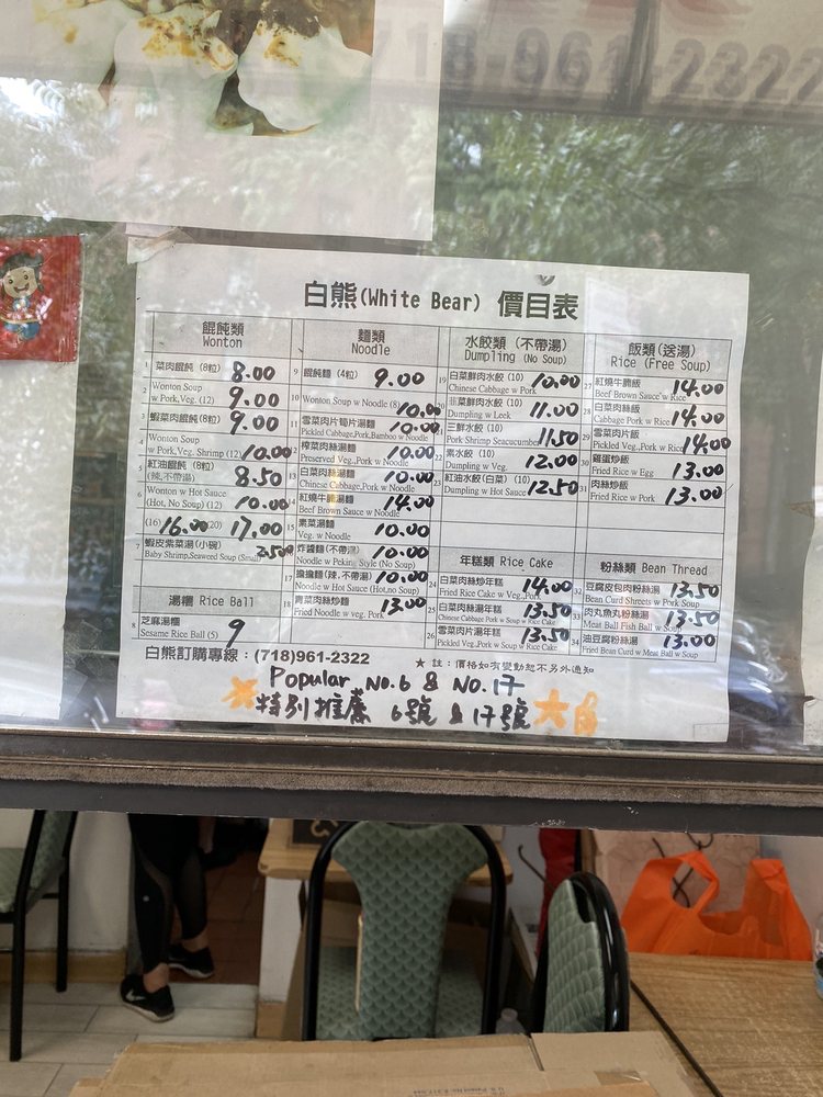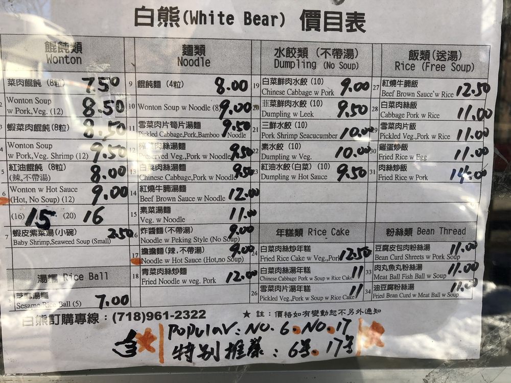 White Bear, a Chinese restaurant in Flushing, NY, offers a variety of dishes that have earned rave reviews from customers. The noodle dish with Peking style, fried noodles with vegetable pork, and dumplings with options like Chinese cabbage or vegetables are standout items on the menu. Customers praise the wontons in spicy chili oil for their delicious taste and affordable price. The casual atmosphere and quick service make White Bear a popular spot for lunch or a quick meal. While the ambience may be simple, the flavors of the homemade dumplings and bean curds shine through. Overall, White Bear is a must-visit for those looking for authentic Chinese street food in a cozy setting.